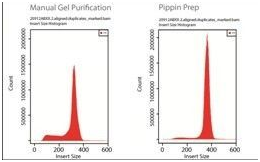 手工切膠回收Pippin Prep/Blue Pippin 幾個(gè)小時(shí)的手工操作 幾分鐘的手工操作 回收的核酸片段大小不精確 精確回收指定大小范圍的核酸片段 存在小分子量(LMW)污染 去除小分子量(LMW)污染 30-50%的回收效率 50-80%的回收效率 回收中、小核酸片段 可以回收大的核酸片段
